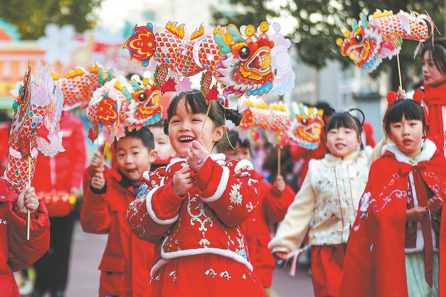International students at Jiangsu University's Overseas Education College came together on Jan 21 for the school's 2024 Spring Festival Party to celebrate the upcoming Year of the Dragon.