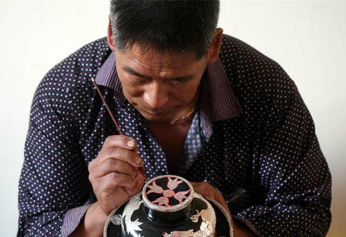 Inheritor of traditional Tibetan wooden products in SW China's Yunnan