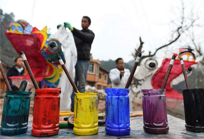 Folk artists make paper dragon to greet coming holidays
