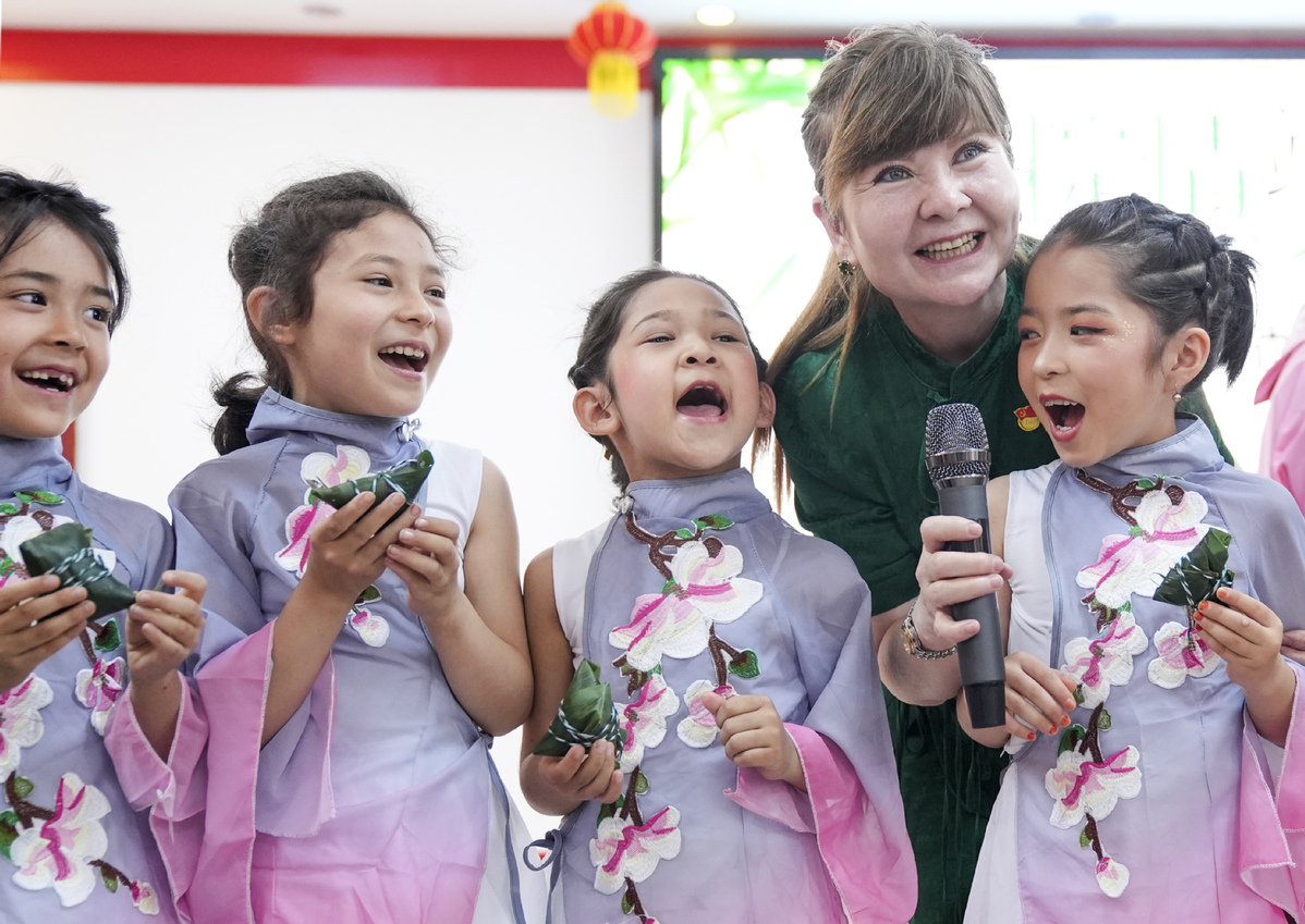 Children learn about the Dragon Boat Festival in Urumqi, Xinjiang Uygur autonomous region, on July 6, 2024. [Photo/Xinhua]